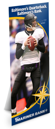 Since 1st Mariner Bank is the largest bank with headquarters in Baltimore, it made sense to make Joe Flacco its spokesperson. DPI designed life-sized "Joe" displays for every bank branch to make the announcement.